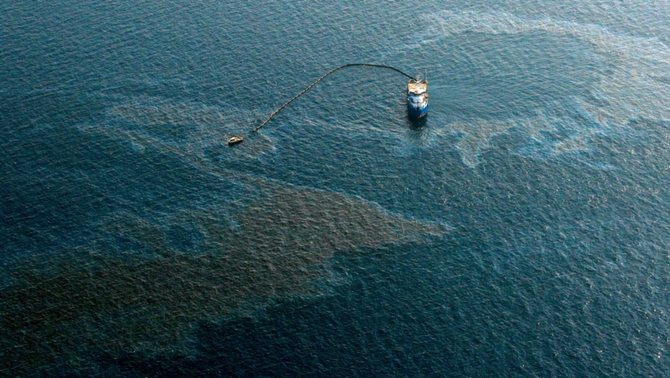 Some 300 liters of oil leaked to the sea, which formed a 200-meter long and 150-meter wide oil slick.